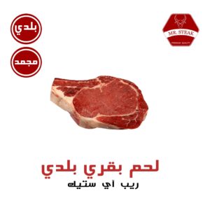The product is equipped with أجود قطعيات اللحم البقري البلدي 100%، وتحديدًا من الجزء الخلفي من القطعية العليا للضلع (Striploin) المعروف بتوازنه المثالي بين الطراوة والنكهة.